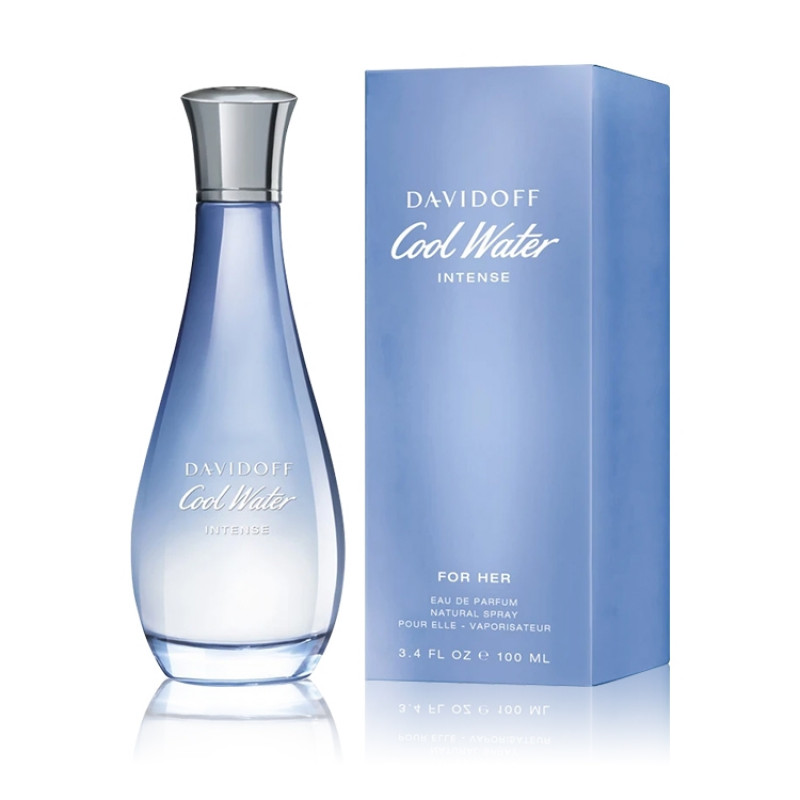 عطر زهري - فواكه للنساء ،Cool Water Intense for Her صدر عام 2019. إفتتاحية العطر الماندرين الأخضر; قلب العطر المانجوستين و الزهور الإستوائية; قاعدة العطر من الأخشاب.