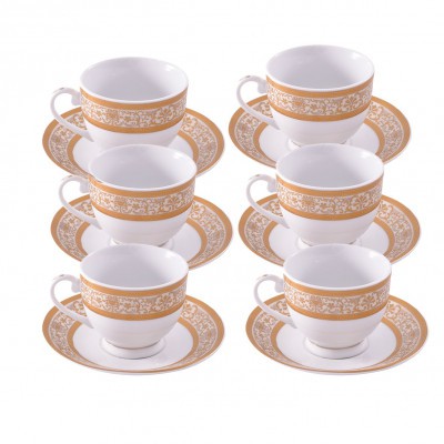 طقم كوب مع الصحن ابيض منقوش ط6 حبة